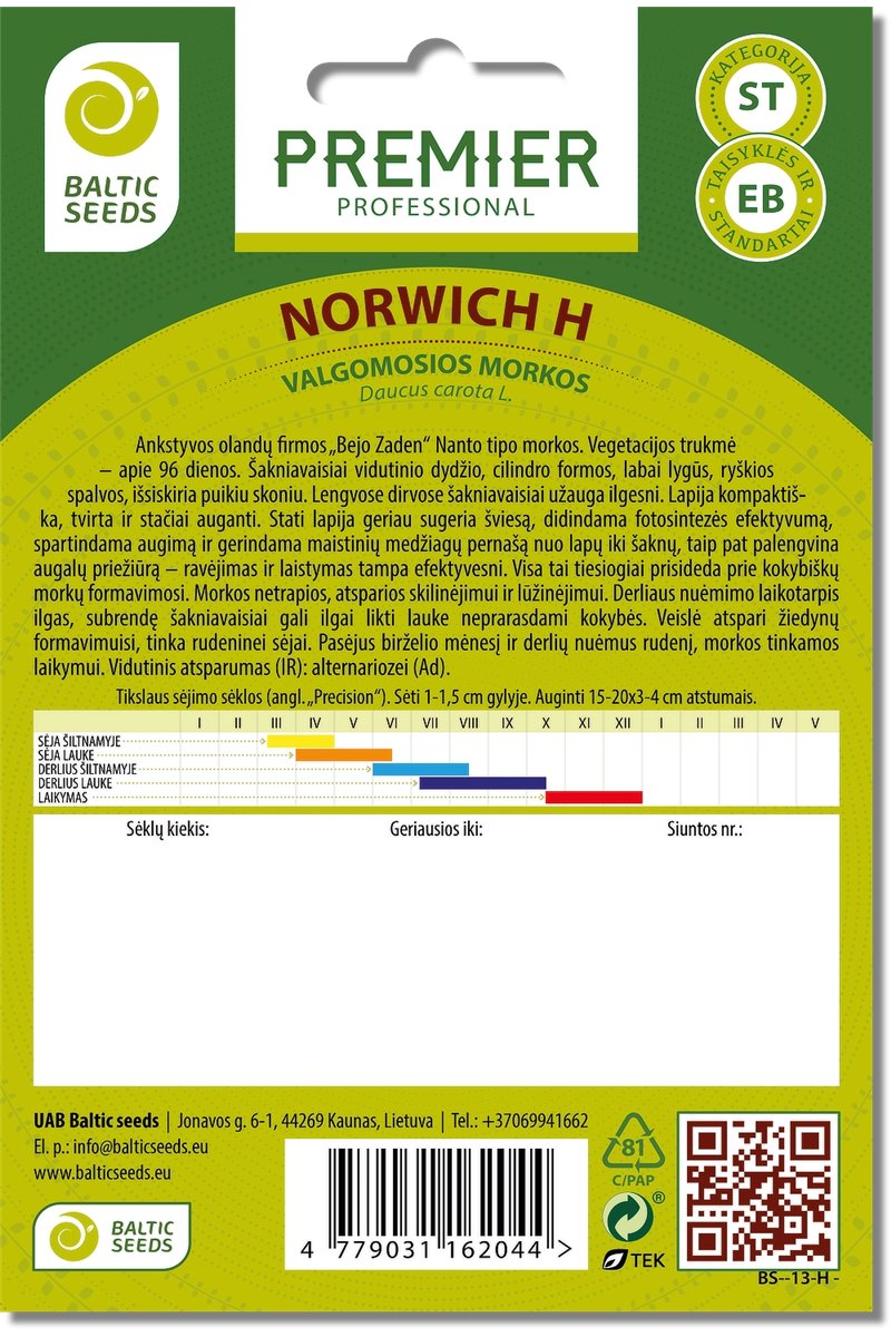 Prekės Morkos NORWICH H (F1), 600 sėklų aprašymas